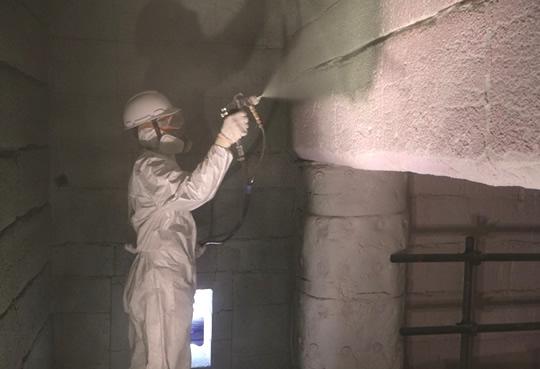 湿法喷涂料是一项综合性工艺,涉及到各种材料(耐火材料、速凝剂)、装备(压送泵、速凝剂泵、清洗水泵、控制系统、喷枪与连接软管)和施工技术等。湿法喷涂料施工时是将混炼好的泥料,通过液压泵和高压空气,采用喷涂法施工,湿法喷涂施工体性能接近浇注料且又具有半干法喷补便于施工的特点。与传统浇注施工方式相比,无需制模,改善了泥料运输方式,节省了施工时间,提高了施工效率以及保证了施工质量。同时,施工现场无粉尘,无需振动棒等振动设备,改善施工环境,有利于施工人员的健康。